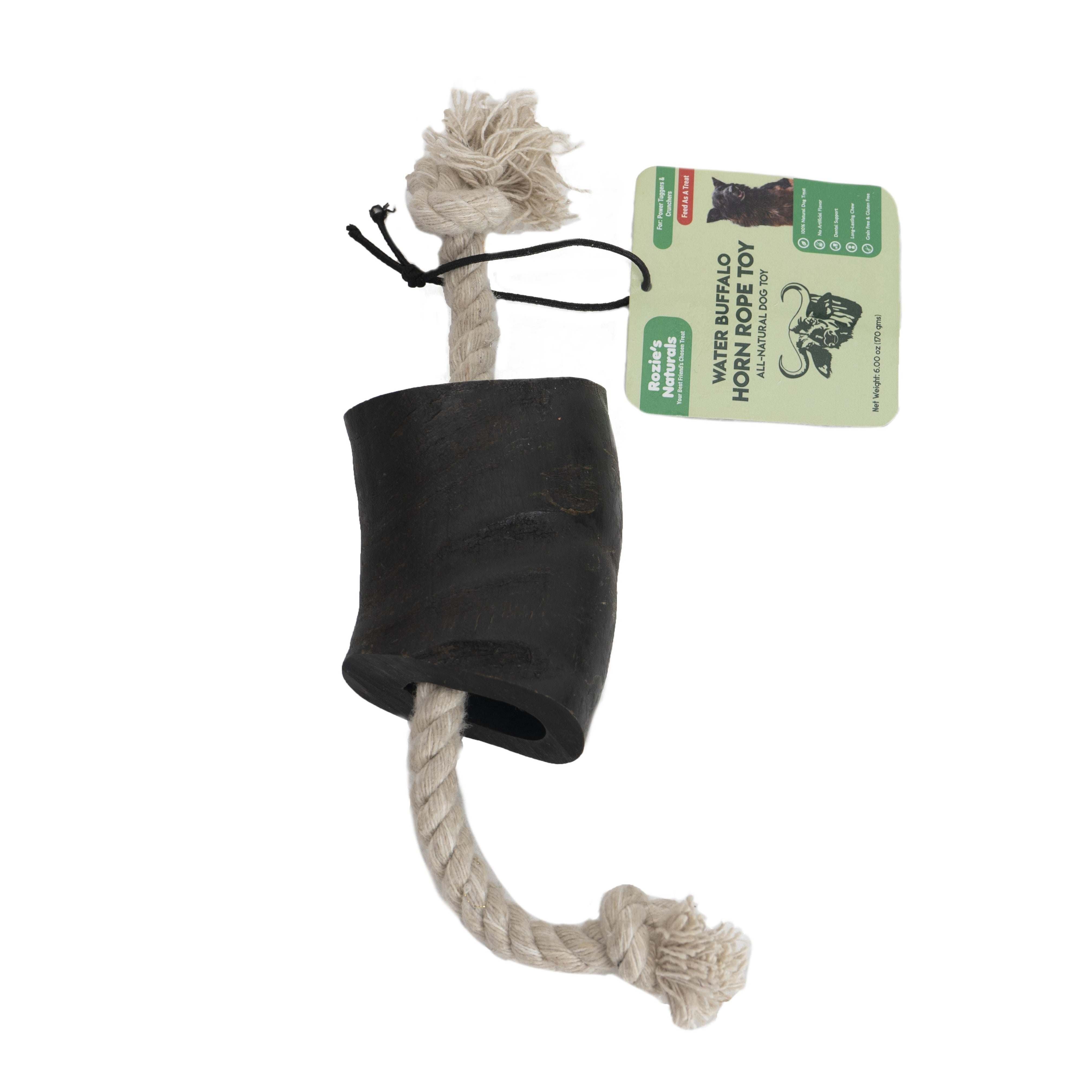 <p>Water Buffalo Horn Rope Toy are derived from 100% grass-fed free-range water buffaloes. They are completely digestible with a considerable amount of protein; calcium; and phosphorus; all necessities to a beautiful; healthy dog. Buffalo horn rope toy is an ideal dog treat as it has dual benefits for your dog. It is a combination of durable cotton rope and horn to let your dog have dual fun of chewing and playing.</p>